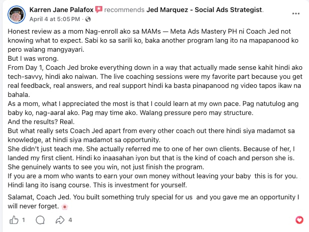 Founder of MAMs the first Meta Ads program built specifically for Filipino women